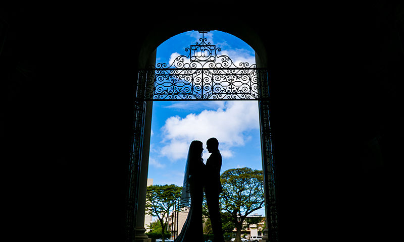 日本人にとってハワイ挙式がポピュラーになり始めた1990年代前半から今もなお、本格的なプロテスタント教会式を望むカップルに人気のセントラルユニオン教会。The Sanctuary大聖堂のほか、Atherton Memorial Chapel中聖堂での挙式並びにガーデン挙式が可能です。大聖堂入り口には「Love Never Faileth」の案内。「神が永遠に私たちを愛してくれている限り、愛は永遠である」ことを意味しています。