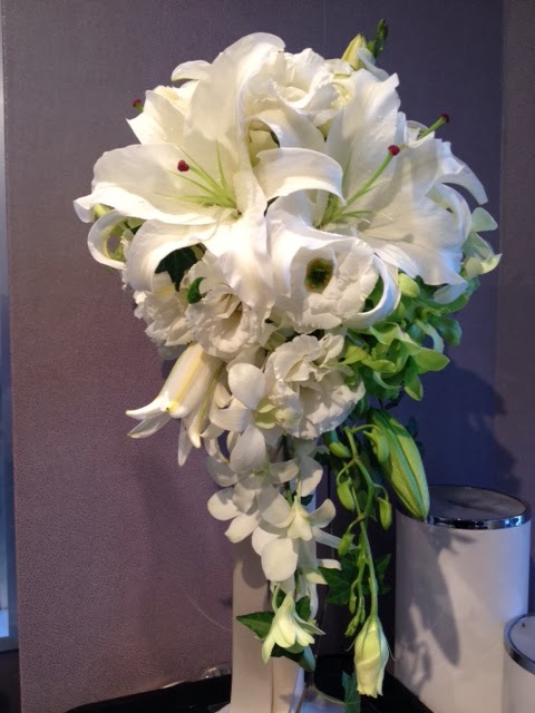 ブーケもカサブランカを使ってゴージャスなセミキャスケードにしました。