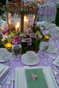 ゲストテーブル装飾もランタンとお花の組み合わせでボリューム感を
